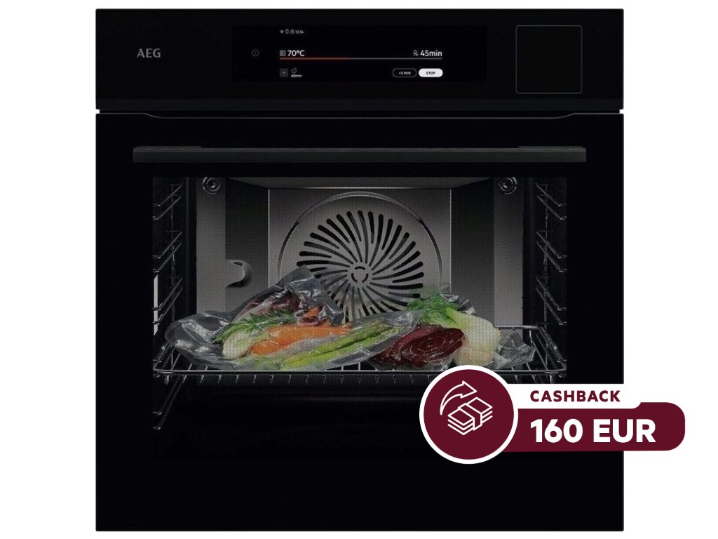 Stredne prepečený steak, zelenina či ryba pripravená v pare? Rúra AEG NBP9S831AB 9000 ProAssist s funkciou SteamPro vám umožní dosiahnuť dokonalé výsledky stlačením tlačidla – bez ohľadu na recept. Príprava v pare obnoví nedojedené pokrmy, umožňuje zachovať 90 % vitamínu C a zároveň spotrebuje menej energie.