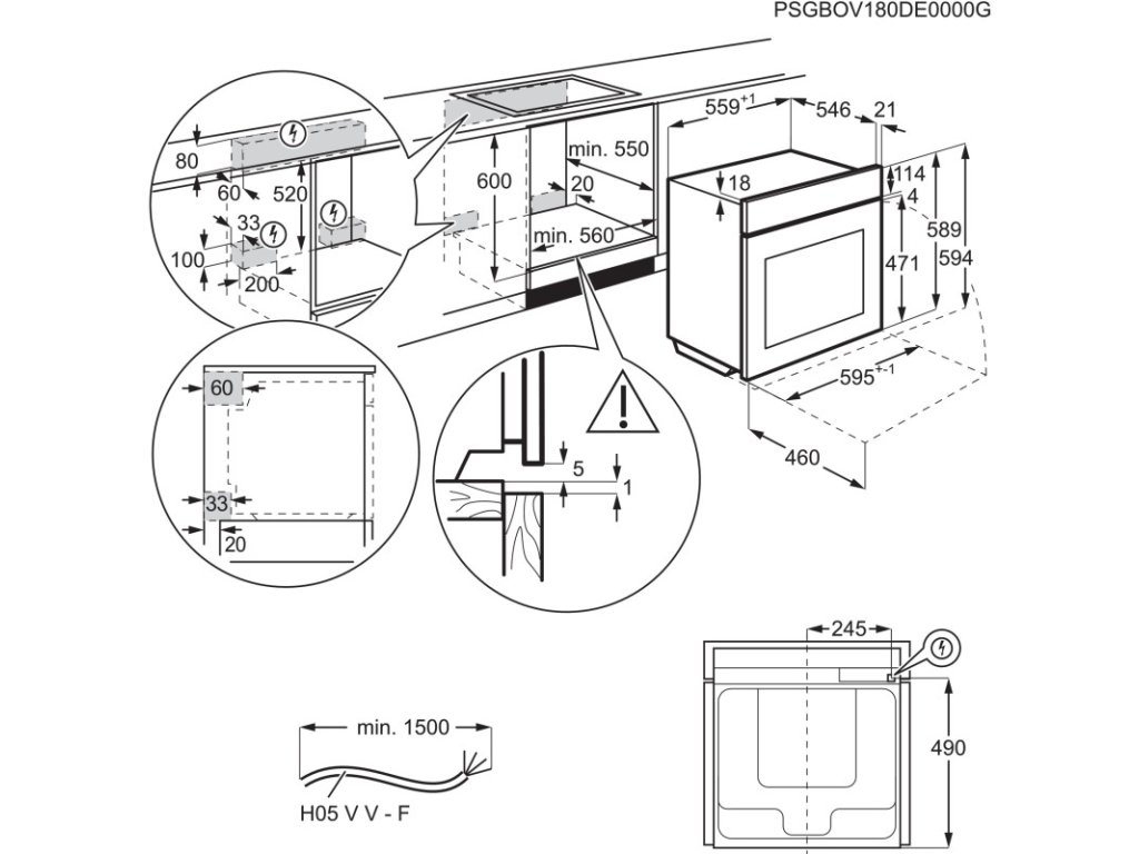 - Rozmery pre zabudovanie VxŠxH (mm): 590x560x550