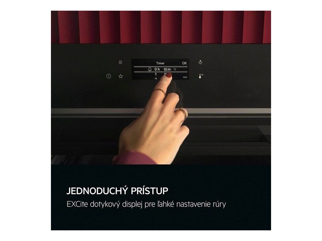 EXCite je citlivý dotykový TFT displej, ktorý vám poskytne intuitívny prístup k rôznym funkciám vašej rúry. Poskytuje informácie počas prípravy jedla, vďaka čomu zabezpečuje plnú kontrolu nad vašimi receptmi.