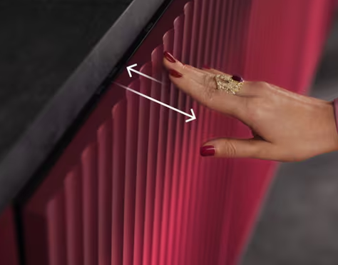 Dvierka Push2Open bez viditeľnej rukoväte umožňujú dokonale začleniť umývačku medzi kuchynské skrinky. Na otvorenie stačí jemne zatlačiť na hornú časť v strede dvierok.