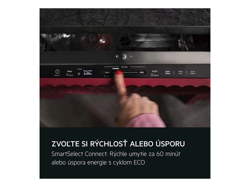 - Ukazovatele funkcií: budík, posunutý štart 1-24 hodín, extra tichý, GlassCare, leštidlo, soľ, TimeOnFloor, ZoneClean