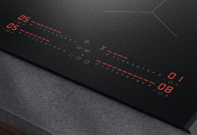 - Ovládacie funkcie: 3 krokové využitie zvyškového tepla, akustický signál, rýchle ohriatie - funkcia Booster, detský zámok, Eco časovač, flexibilný Power Management, Heat memory, Hob2hood, Individual zone timers, zámok tlačítok, ľavý Bridge, minútka, pauza, SenseCook Boil, SenseCook Fry, vypnutie zvuku