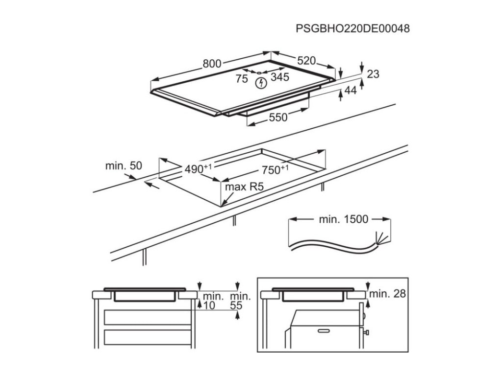 - Šírka výrezu (mm): 750