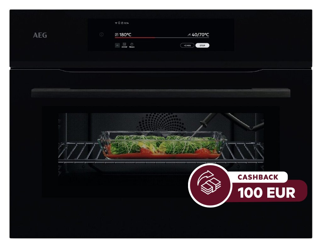 Kompaktná rúra AEG NKK9N82KB s mikrovlnami využíva cirkuláciu horúceho vzduchu s pokročilou mikrovlnnou technológiou. Dokáže grilovať, piecť a zapekať až o 50 % rýchlejšie ako bežná rúra.
