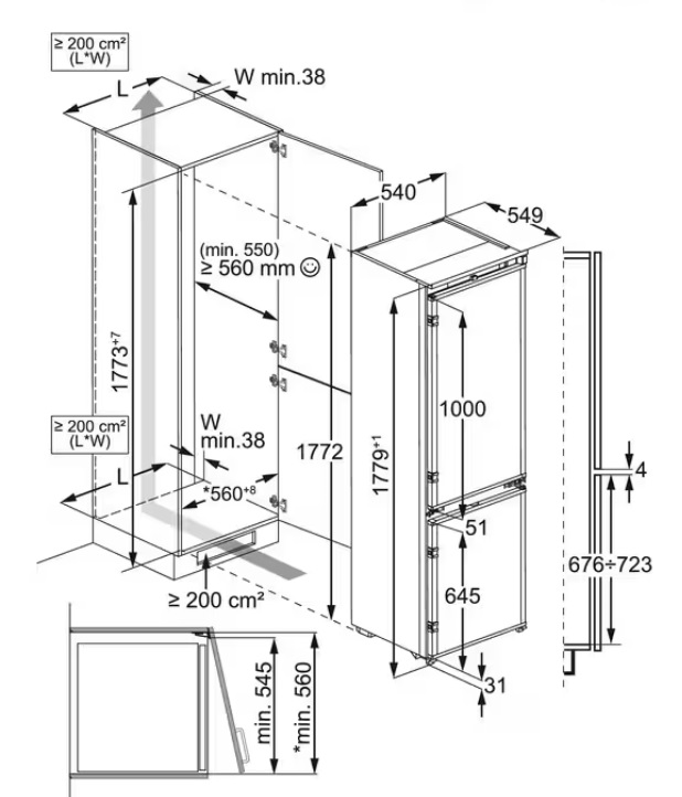 - Rozmery pre zabudovanie VxŠxH (mm): 1780x560x550