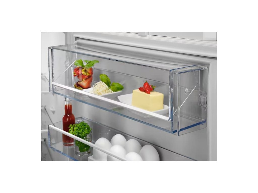 - Zásuvky mrazničky: 3 plnej šírky, priehľadné plastové