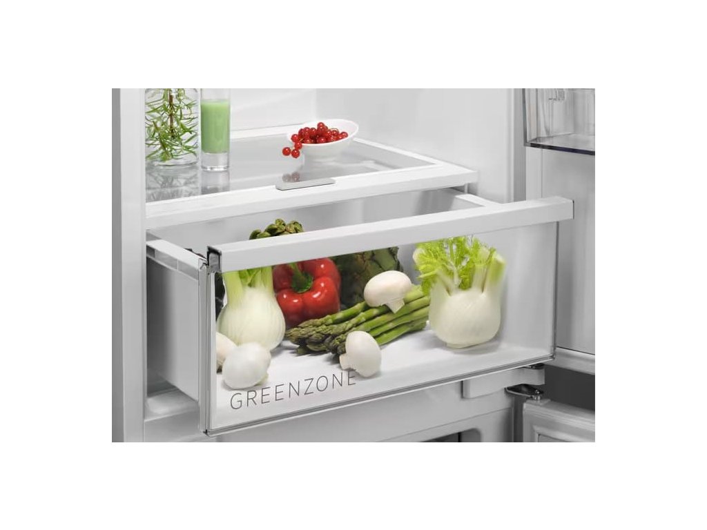 Zásuvka GreenZone odstraňuje prebytočnú vlhkosť, pričom zachováva správnu úroveň vlhkosti pre zeleninu. Vďaka tomu je zelenina chránená správnou vlhkosťou a po 11 dňoch si zachová až 95 % vitamínov (miera zachovania vitamínov založená na externom teste zachovania vitamínu C v čučoriedkach po 11 dňoch v zásuvke GreenZone).