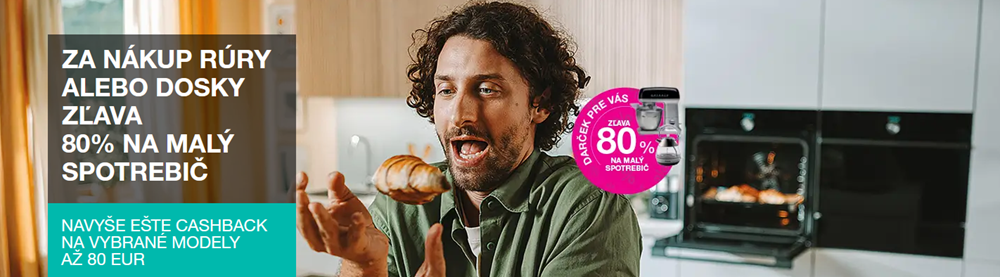 Získajte 80 % zľavu na malý domáci spotrebič a pri vybraných vstavných rúr a varných dosek späť až 80 Euro. Zľavový kód stačí zadať v košíku nášho e-shopu pri nákupe jedného z ľubovoľných malých domácich spotrebičov a voľne stojacich mikrovlnných rúr.