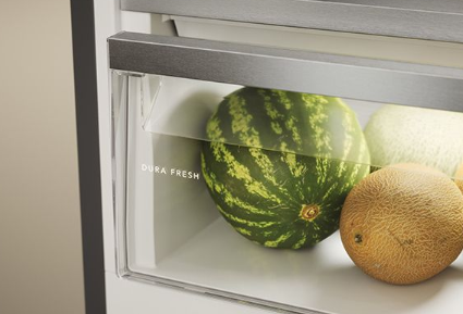 Zásuvky Dura Fresh vytvárajú ideálnu mikroklímu pre rôzne druhy potravín. Suchá zásuvka je ideálna pre ryby, mäso a mliečne výrobky, zatiaľ čo zásuvka s automatickým riadením vlhkosti je určená na ovocie a zeleninu. Každá zásuvka má vlastné teplotné nastavenie nezávislé od zvyšku chladničky, takže uchová potraviny dlhšie čerstvé a chutné.