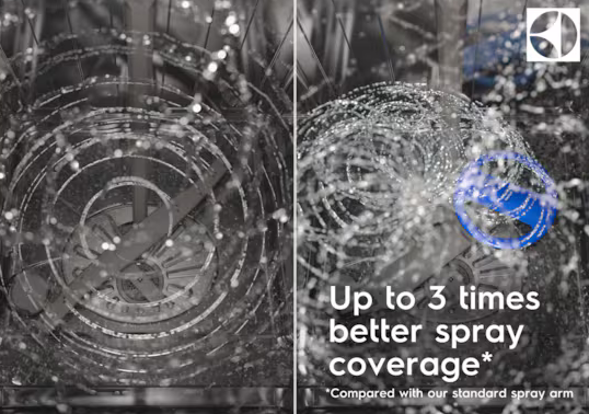 Sprchovacie rameno SatelliteClean® dosahuje až trikrát lepšie výsledky umývania než bežné rameno. Dvojitá rotácia a neustále meniaci sa uhol sprchovania zabezpečujú perfektne umytý a žiarivo čistý riad.