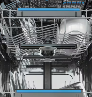 Dve otočné sprchovacie ramená dôkladne osprchujú vodou každé zákutie vo vnútri umývačky. Riad bude perfektne čistý. V hornom i dolnom koši.