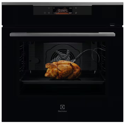 Teplotná sonda vám umožní zakaždým pripraviť skvelé jedlá, pretože neustále meria teplotu uprostred jedla. Keď sa dosiahne správna teplota, rúra vám to oznámi a zastaví prípravu.