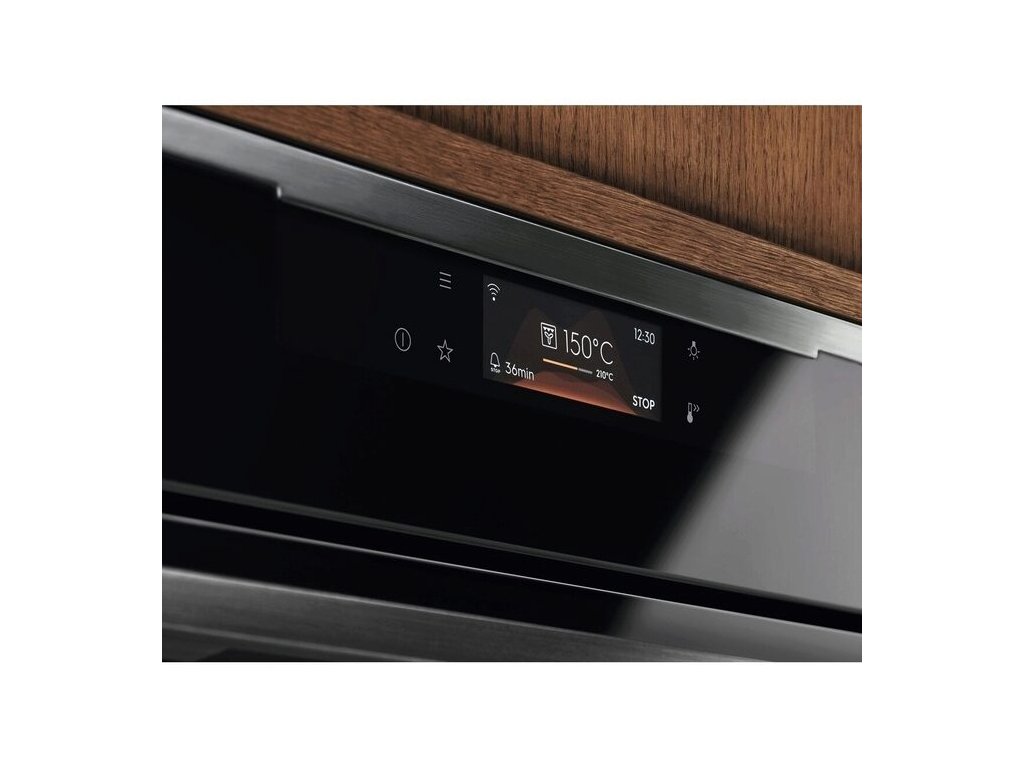 - Elektronické funkcie: elektronický zámok dvier, Electronical door switch, rýchle predohriatie s výberom možností, senzor pokrmu, automatické vypnutie senzoru pokrmu, ukazovateľ teploty senzoru pokrmu, Food sensor end action adjustable, senzor pokrmu s odhadom času, Function lock (in running mode), tóny tlačidiel a tóny alarmu a chýb - aktivácia / deaktivácia (okrem ZAP/VYP), hlavný vypínač, denná pamäť 3 dni späť, minútka, Oven light on/off selectable (menu direct access button), ukazovateľ skutočnej teploty (°C) , indikácia zvyškového tepla (°C), využitie zvyškového tepla, servisné informácie, vypnutie času dňa v stave vypnutia, odporučaná teplota, denný čas, nastavenie jasu displeja, Display Full colour TFT touch 95x35mm, elektronická regulácia teploty, 171 Variety of pre-set cooking programmes 'Assist', 3 obľúbené programy, 3 Pyro cycles (quick. normal. intense), 31 Languages/Text display, akustický signál, ovládanie aplikácií, automatické vypnutie (len rúry), nastaviteľná hlasitosť zvukového upozornenia, kontrola výsledku/predĺženie času (Finish Assist podľa zostávajúceho 10% trvania), Child lock (in off mode), minútka pre čistenie, Clock style in standby (2 versions), konektivita, čas varenia, čas varenia s odhadovaným koncom, stopky, Delayed start (Time delay), demo program s kódovaním