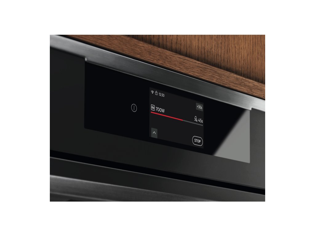- Elektronické funkcie: denná pamäť 3 dni späť, Microwave Power level proposal, minútka, OTA programming (excluding power board), Oven light on/off selectable (2 ways: menu, direct access on home screen), Preheating (none, eco, fast), ukazovateľ skutočnej teploty (°C) , indikácia zvyškového tepla (°C), Residual heat usage (only with duration), servisné informácie, Short cut keys in standby screen, odporučaná teplota, denný čas, Display Full colour TFT touch 4.3 inches 9 x 5, 17 Variety of pre-set cooking programmes 'Assist', 11 Multi Step Cooking Functions, 25 Languages / Textdisplay, akustický signál, ovládanie aplikácií, automatické vypnutie (len rúry), nastaviteľná hlasitosť zvukového upozornenia, Check Result (Finish Assist by remaining 10% duration) ('Use residual heat' screen + beep), Child lock (in off mode), Clock automatic adjustment, Clock style in standby (2 versions: digital, 7 segments), konektivita, čas varenia, čas varenia s odhadovaným koncom, stopky, demo program s kódovaním, nastavenie jasu displeja, elektronická regulácia teploty, Electronical door switch, rýchle predohriatie s výberom možností, senzor pokrmu s odhadom času, tóny tlačidiel a tóny alarmu a chýb - aktivácia / deaktivácia (okrem ZAP/VYP), hlavný vypínač