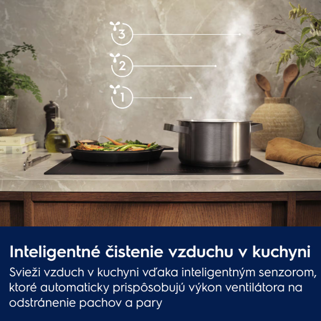 Technológia AutoSense intuitívne rozpoznáva pachy, mastnotu a paru a automaticky upravuje rýchlosť ventilátora pre optimálnu kvalitu vzduchu. Varte v čistej a sviežej kuchyni vďaka odsávaču pár, ktorý sa dokonale prispôsobuje vašim potrebám.