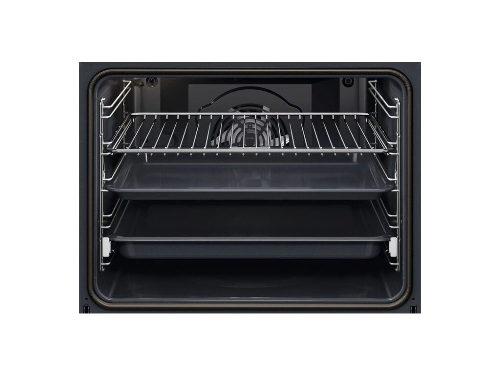 - Funkcie pečenia: gril + ventilátor, spodný ohrev, gril, gril + spodný ohrev, gril + spodný ohrev + ventilátor, kruhové teleso + spodný ohrev + ventilátor, kruhové teleso + ventilátor