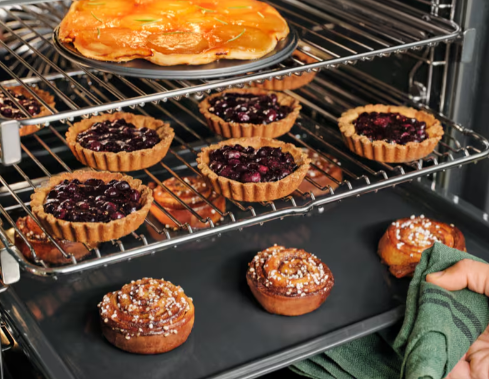 Viacúrovňové pečenie pridáva tretí ohrevný článok, ktorý vám umožní piecť rovnomerne na viacerých úrovniach. Ideálne na prípravu sušienok alebo koláčov na troch plechoch súčasne.
