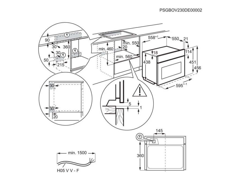 - Rozmery pre zabudovanie VxŠxH (mm): 450x560x550