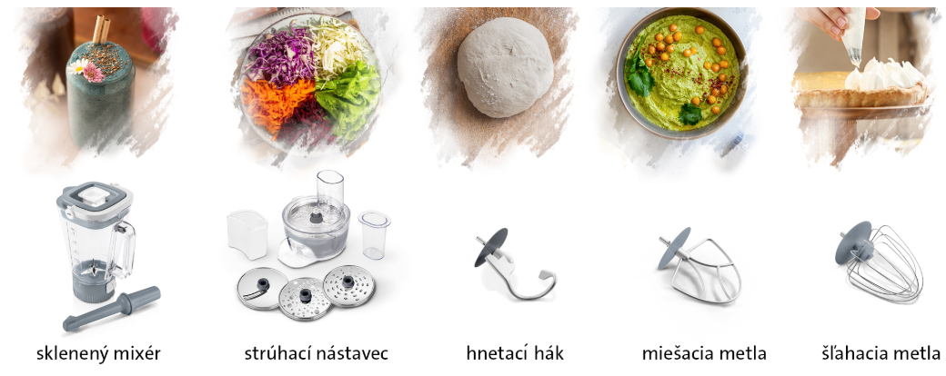 - Inovatívny nadstavec na šľahanie s predĺženou pracovnou časťou zaistí efektívnejšie premiešanie surovín aj u stien misy