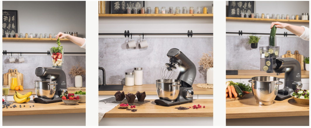 Neoddeliteľnou súčasťou kuchynského robota ETA Gratus EVO je aj kvalitné príslušenstvo. Metla na miešanie je ideálna na dokonalé premiešanie ľahkého cesta na torty, piškótu alebo napr. lievance. Metlu na šľahanie využijete na vyšľahanie šľahačky, snehu z bielkov aj na prípravu nátierok. Hnetací hák vám uľahčí prípravu kysnutého a hutnejšieho cesta a poradí si tak s chlebom aj chutnou vianočkou.