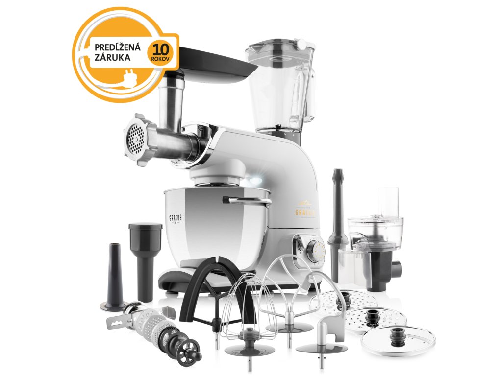 Objavte kuchynský robot, ktorý vám skutočne uľahčí prácu v kuchyni a pomôže vám s prípravou všetkých vašich obľúbených jedál. Kuchynský robot ETA Gratus EVO Max mieša, šľahá, hnetie, mixuje, ale navyše aj strúha, melie mäso a vyrobíte s ním aj domáce údeniny. Posuňte vaše kulinárske umenie na vyššiu úroveň!
