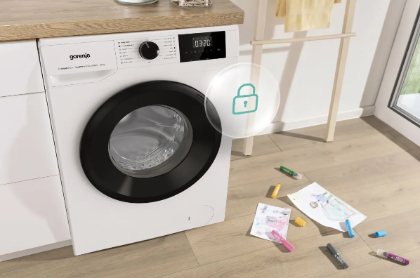 Počas prania sú dvierka automaticky zamknuté, takže ich nie je možné otvoriť. Pre väčšiu istotu možno kombináciou tlačidiel uzamknúť aj ovládací panel, čím zabránite nechceným zmenám nastavenia.