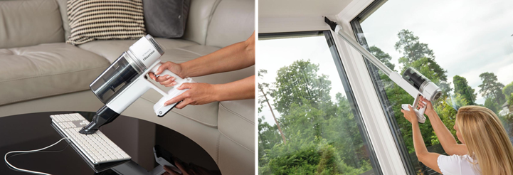 Využívajte všetky výhody vertikálneho vysávača, ktorý sa v priebehu niekoľkých sekúnd zmení na ručný vysávač. S prídavnými hubicami (prachová kefa a štrbinová hubica) a v rôznych kombináciách len s ručnou časťou alebo so sacou trubicou neexistuje úloha, ktorú by ste nezvládli.