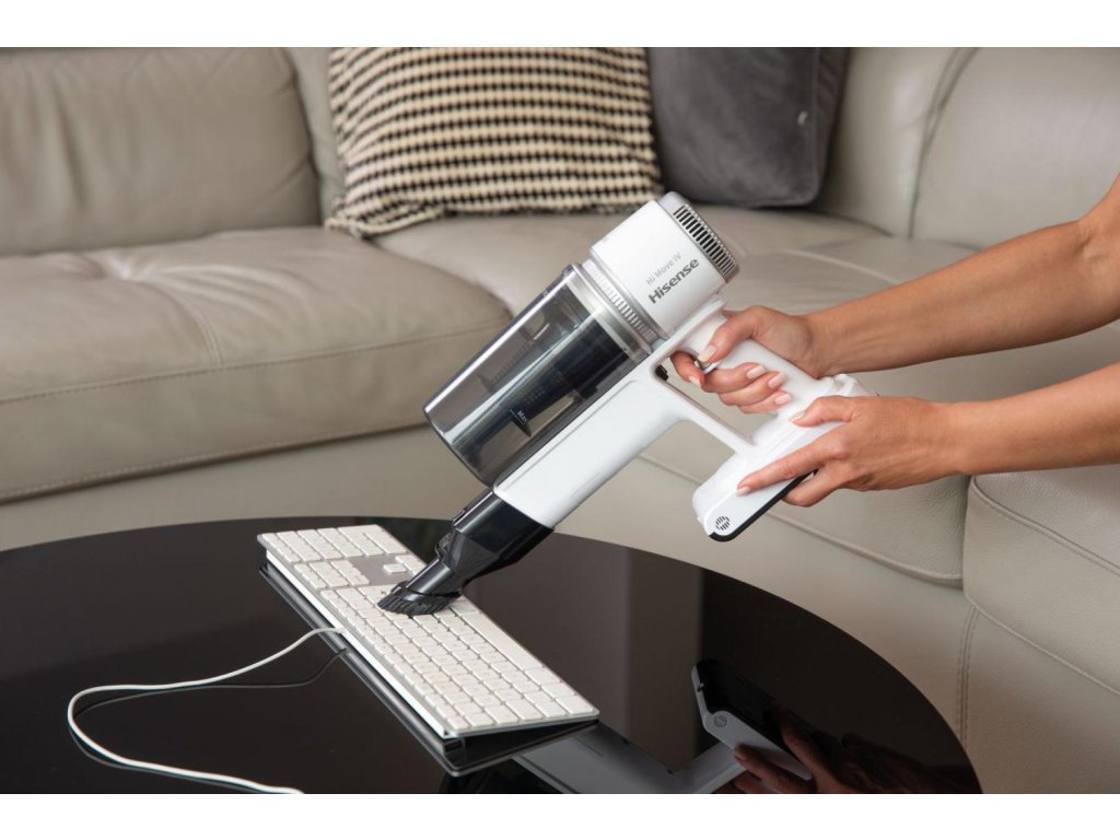 Ak chcete byť zdraví a šťastní, musíte žiť a pracovať v čistom prostredí. Akumulátorové vysávače Hisense sú ľahké a ľahko prenosné. Sú skvelou alternatívou k bežným vysávačom. Bez napájacieho kábla vás nebudú nijako obmedzovať. Tento vysávač sa v priebehu niekoľkých sekúnd zmení na praktický ručný vysávač a je ideálny na rýchle upratovanie, na ktoré máte len niekoľko minút. Pozrite si náš sortiment akumulátorových vysávačov Hi-Move IV. Spájajú elegantný dizajn so špičkovou technológiou a funkciami pre vždy dokonalé výsledky.