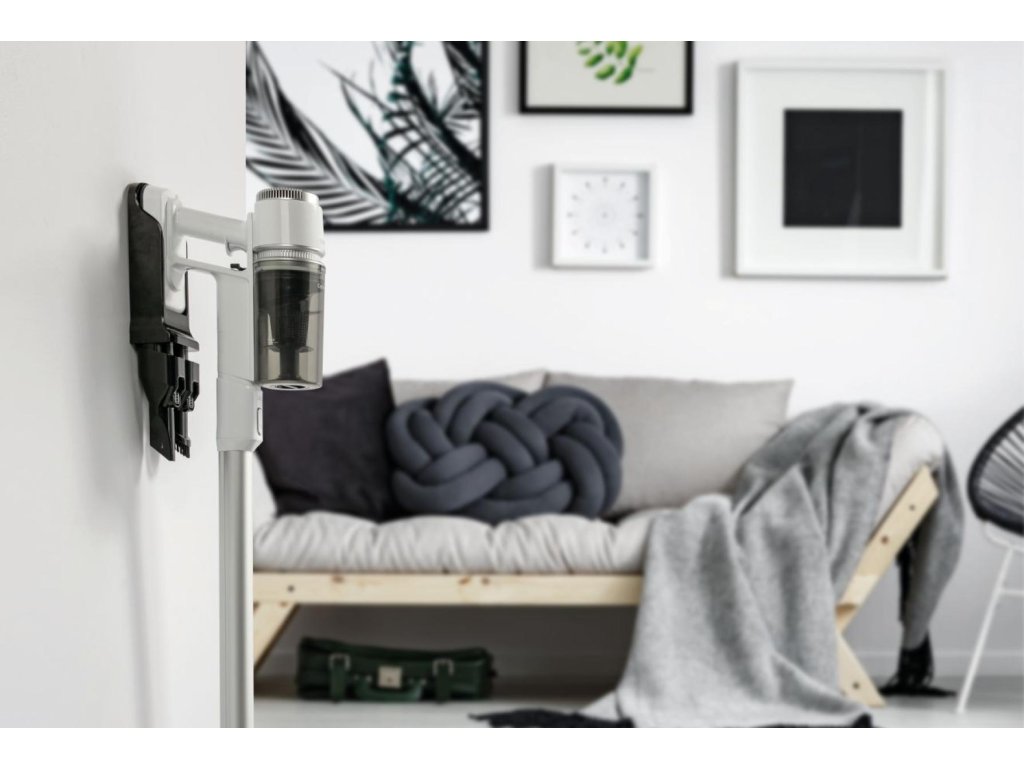 Nabíjačka slúži aj ako upevňovacie zariadenie, v ktorom je spotrebič pohodlne uložený. To pomáha udržiavať poriadok a šetrí miesto. Možno do nej uložiť aj prachovú kefu a štrbinovú hubicu, takže ich vždy ľahko nájdete.