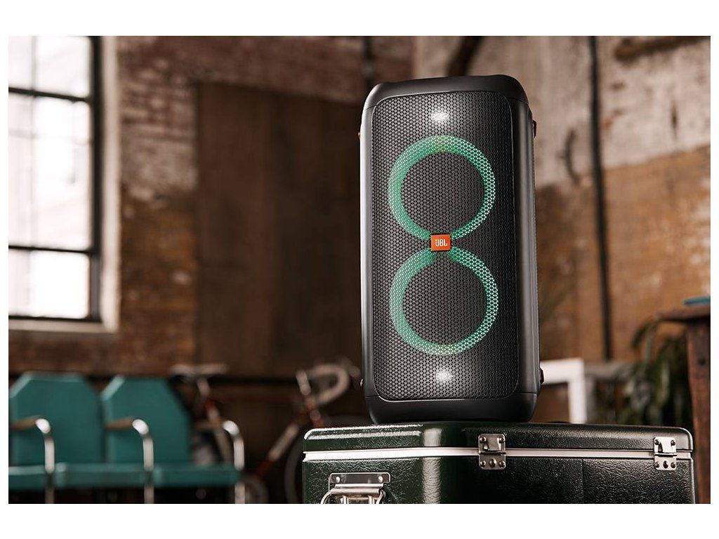 Rozprúďte najlepšiu párty v meste. Reproduktor JBL PartyBox 100 poskytne 160 W bijúceho charakteristického zvuku JBL. Začnite párty kdekoľvek a kedykoľvek, keď to bude potrebné.