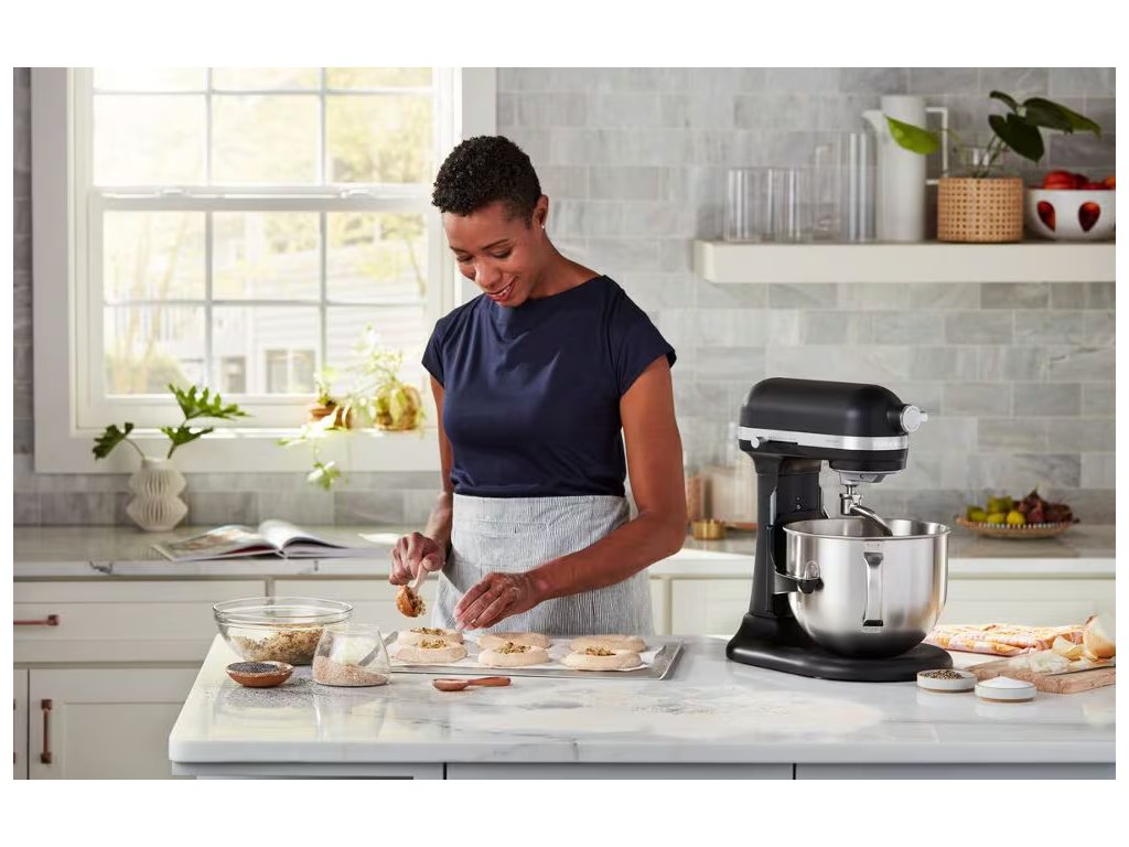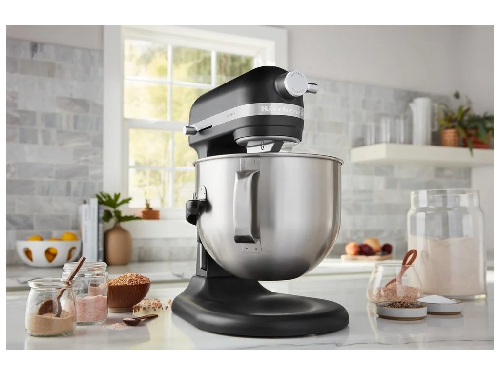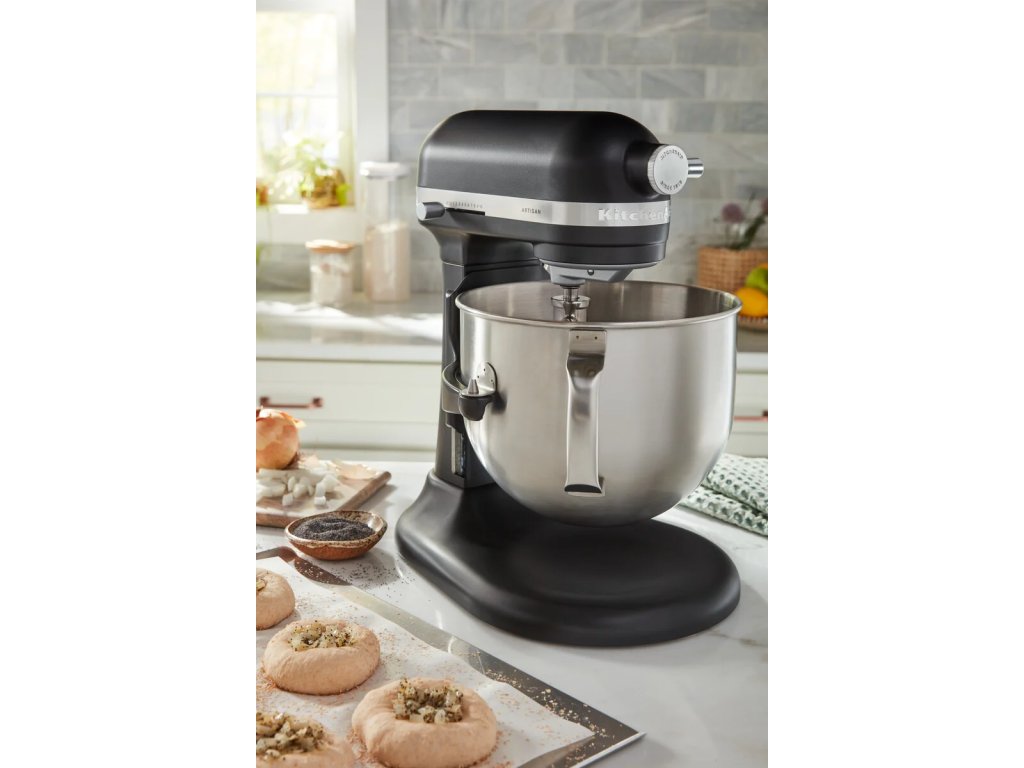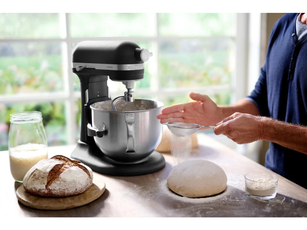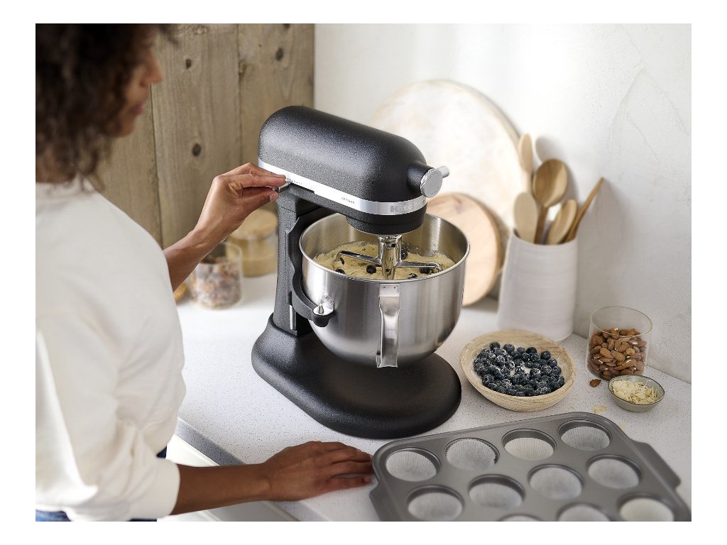 Najvýkonnejší kuchynský robot KitchenAid s pojazdnou misou prichádza s modernizovaným dizajnom a ešte lepšou premiešavacou schopnosťou vďaka 11 rýchlostiam. Nový plastový štít s bezpečným uchytením, jedinečne tvarovaný špirálový hnetací hák napodobňujúci ručné hnetenie a šľahač s dvojitým pružným okrajom zabezpečia, že sa suroviny dokonale premiešajú a nič nezostane na stenách misy.