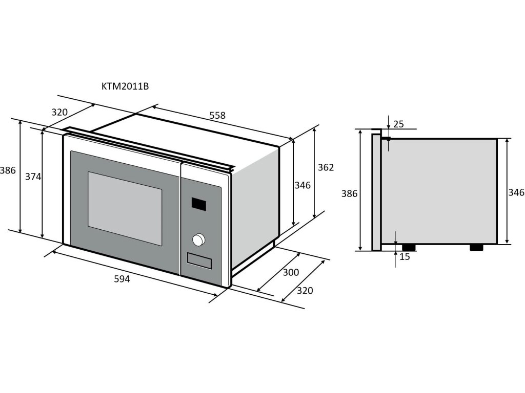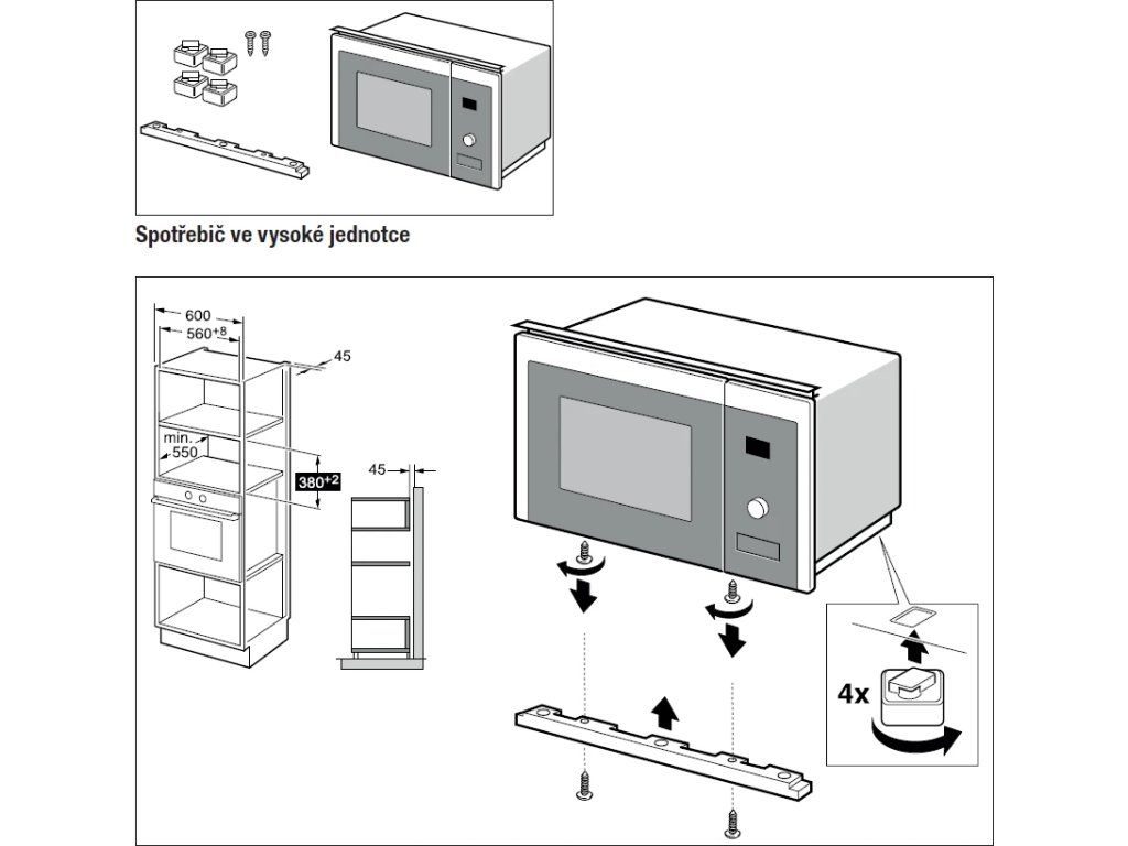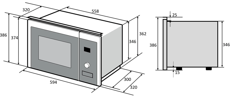 Pre vstavanú inštaláciu sú určené rozmery 38 × 56 × 55 cm, vďaka čomu rúra jednoducho zapadne do kuchynskej linky.