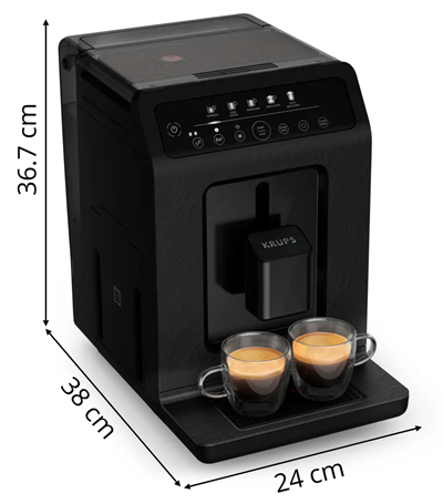 Automatický kávovar – 15 bar, 1450 W, 3 stupne teploty, Kovová kónická brúska, 5 kávových špecialít, Mliečny systém, Technológia Quattro Force, Systém One-Touch Cappuccino, Automatické čistenie, objem nádoby na vodu < 2,5 l, objem nádoby na mlieko 300 ml, čierna farba