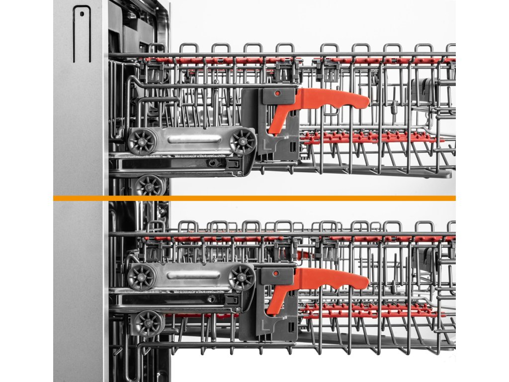 Do umývačky môžete naskladať až 14 obedových súprav do trojúrovňového interného rozloženia. To robí z D1000 ideálnou voľbou pre veľké rodiny, oslavy, alebo aj party. Umožňuje dokonalé čistenie a sušenie každého kusu vášho riadu, takže sa nemusíte báť, že by nejaký riad zostal neumytý. Vďaka príborovej zásuvke a extra vysokému priestoru 62,8 cm máte dostatok miesta pre objemnejší riad, zatiaľ čo vaše príbory zostanú aj tak perfektne umyté. S umývačkou LORD D1000 zvládnete umývanie riadu na jedničku a to aj po veľkej oslave!