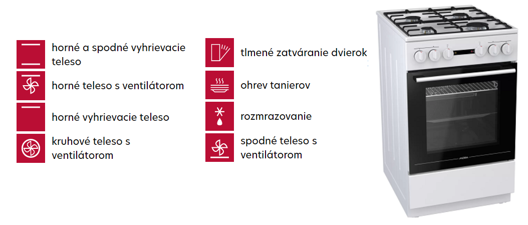 Biely kombinovaný sporák Mora K 561 AW s multifunkčnou rúrou Vás prekvapí energeticky úspornou triedou "A". Plynové horáky osadené poistkou STOP GAS s integrovaným zapaľovaním sú kryté dvojdielnou mriežkou STABIL PLUS, ktorá zabezpečuje bezpečný posun nádoby vo všetkých smeroch.