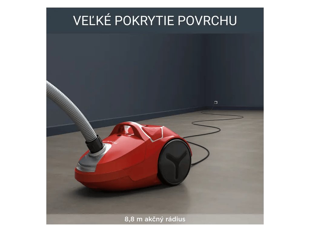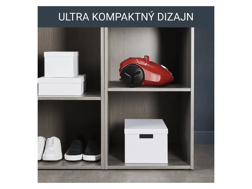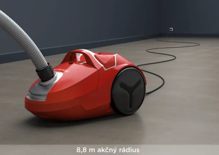 Vysávač Compact Power™ je možné vďaka kompaktnému formátu ľahko skladovať v skrini, a napriek tomu poskytuje veľký objem vrecka 3 l. Rukoväť s integrovanou kefou EASY BRUSH, ktorý je vždy poruke, umožňuje veľmi pohodlné použitie. A akčný rádius 8,8 m ponúka skutočnú slobodu pri vysávaní.