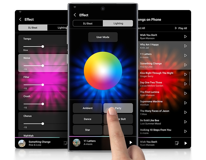 Rozbehnite párty s aplikáciou, ktorá je dokonalá pre dídžejov. Ľahko v nej ovládate rôzne svetelné a zvukové efekty, a dokonca aj vaše nastavenia ekvalizéra – priamo z mobilu. Párty začína!