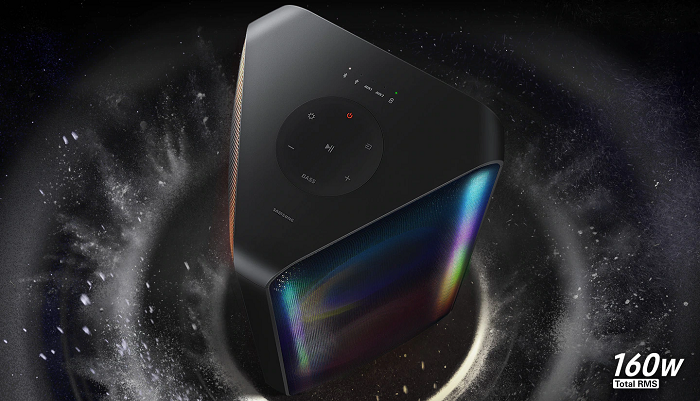 S párty reproduktorom Samsung MX-ST40B dostanú vaše večierky nový rozmer. Obohatia ich totiž o skvelú hudbu, pričom DJom sa môžete stať aj vy a všetko ovládať rovno zo smartfónu! Vďaka originálnemu dizajnu naplní zvukom celú miestnosť – a užiť si môžete poriadne intenzívne počúvanie s výkonom 160 W a technológiou Bass Booster. Obmedzovaný nebudete skutočne ničím – svedčí o tom integrovaná batéria s výdržou až 12 hodín, rovnako ako odolnosť voči vode podľa IPX5. Párty oživia aj svetelné efekty Party Lights+ a pomocou Bluetooth môžete nielen streamovať hudbu, ale pokojne aj reproduktor pripojiť k TV.