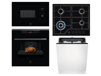 Set vstavaných spotrebičov – vstavaná rúra + vstavaná mikrovlnka + plynová varná doska + vstavaná umývačka riadu (šírka 60 cm)